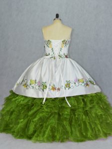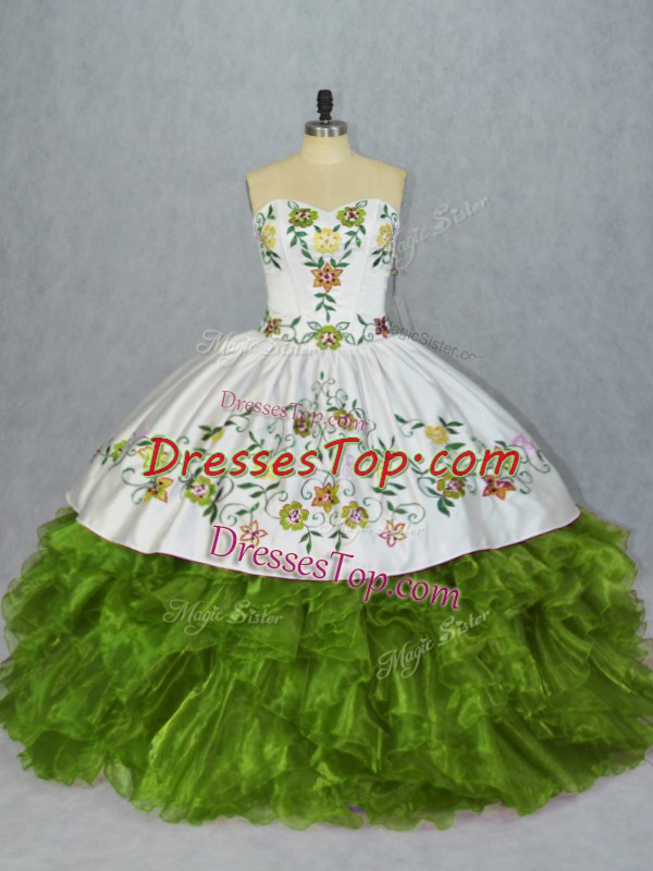 Sleeveless Floor Length Embroidery and Ruffles Lace Up Sweet 16 Quinceanera Dress with Olive Green