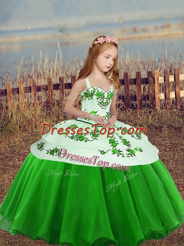 Sleeveless Floor Length Embroidery Lace Up Kids Pageant Dress with