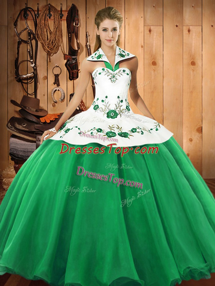 Sleeveless Floor Length Embroidery Lace Up Quinceanera Dress with Green