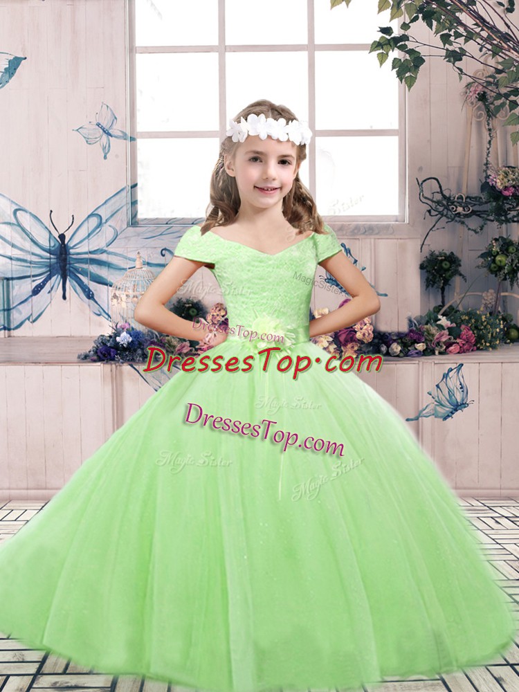 Sleeveless Floor Length Lace and Belt Lace Up Kids Pageant Dress with