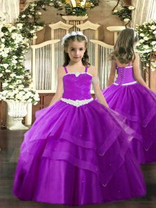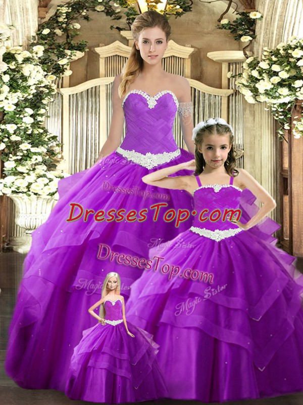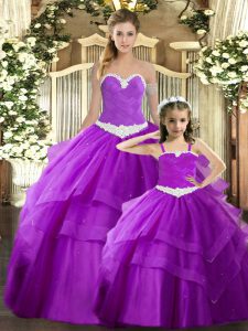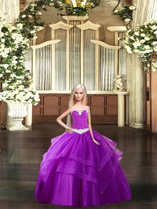 Sleeveless Floor Length Ruching Lace Up Quince Ball Gowns with Purple