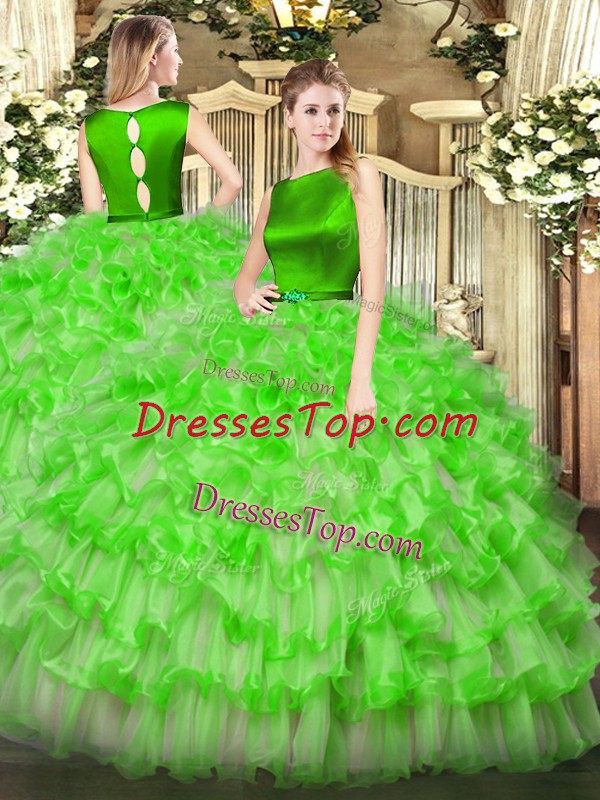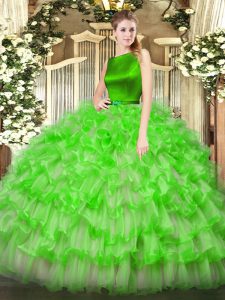 Sleeveless Floor Length Ruffled Layers Clasp Handle Quinceanera Gowns
