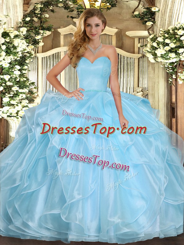 Sleeveless Floor Length Ruffles Lace Up Quinceanera Dress with Aqua Blue
