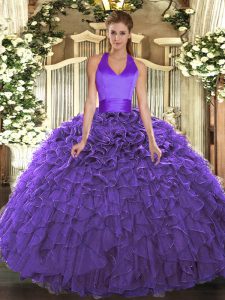 Sleeveless Floor Length Ruffles Lace Up Sweet 16 Quinceanera Dress with Purple