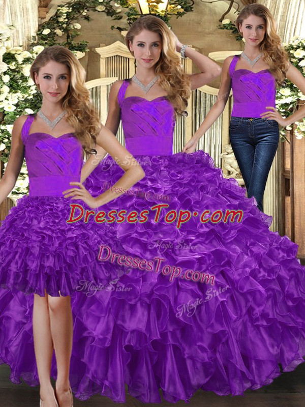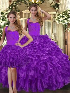 Sleeveless Floor Length Ruffles Lace Up Vestidos de Quinceanera with Purple
