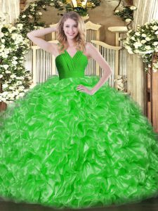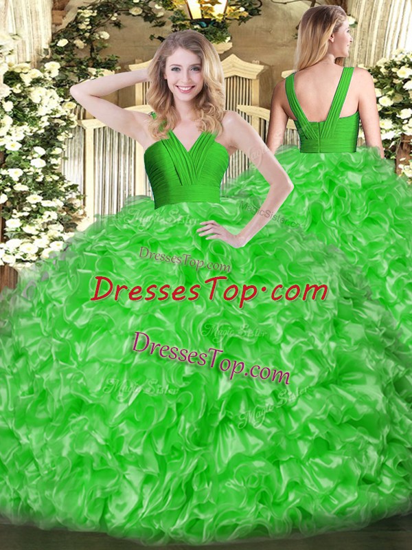 Sleeveless Floor Length Ruffles Zipper Quinceanera Dress with Green