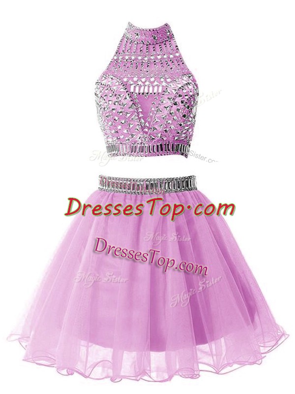 Sleeveless Knee Length Beading Zipper Dama Dress with Lilac