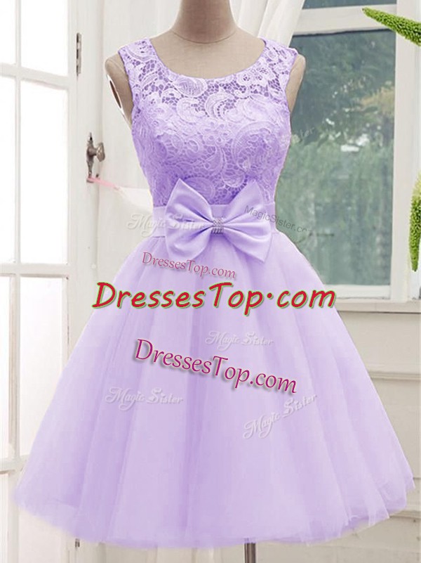 Sleeveless Lace and Bowknot Lace Up Court Dresses for Sweet 16