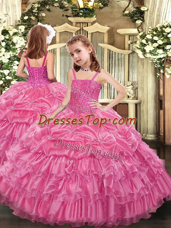 Sleeveless Lace Up Floor Length Beading and Ruffled Layers and Pick Ups Little Girl Pageant Gowns