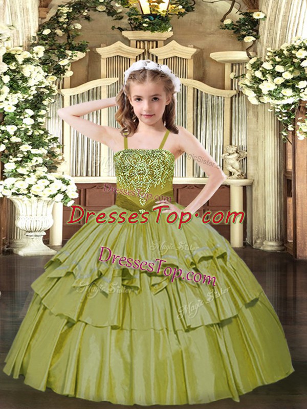 Sleeveless Lace Up Floor Length Beading and Ruffled Layers Pageant Dress for Womens