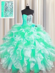 Sleeveless Lace Up Floor Length Beading and Ruffles 15th Birthday Dress