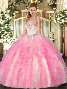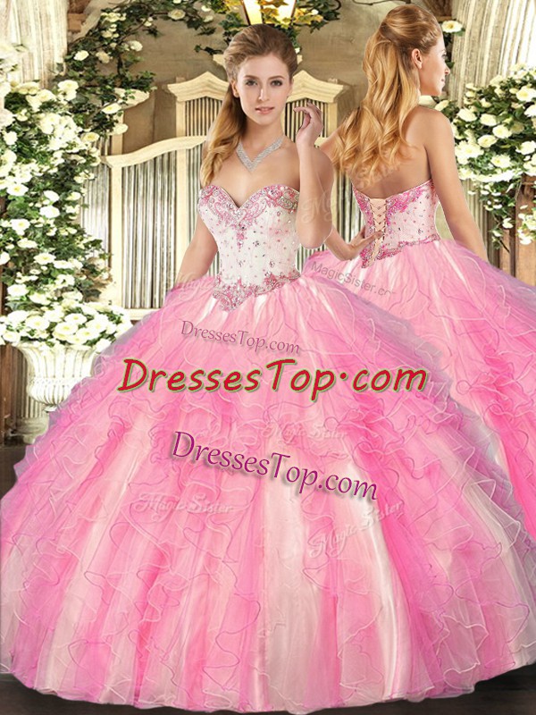 Sleeveless Lace Up Floor Length Beading and Ruffles 15th Birthday Dress