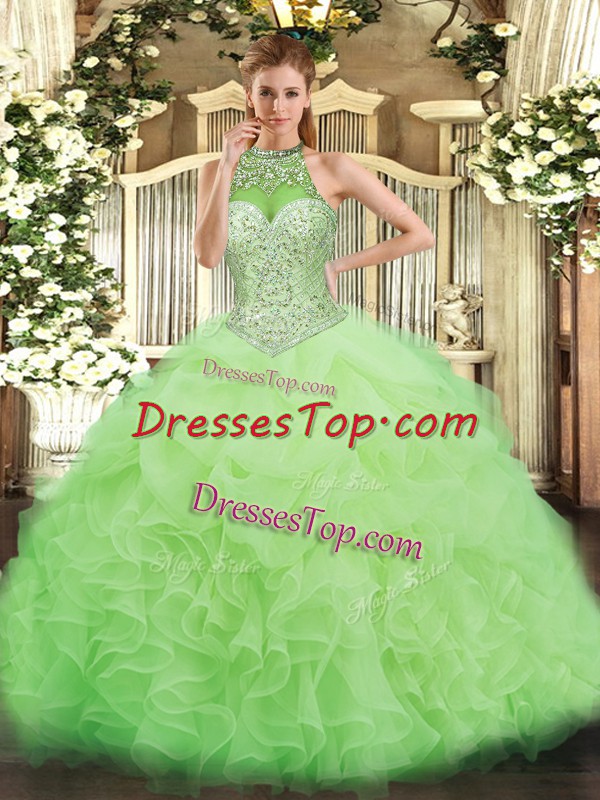 Sleeveless Lace Up Floor Length Beading and Ruffles and Pick Ups Quinceanera Gowns