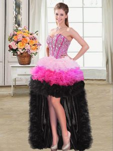 Sleeveless Lace Up Floor Length Beading and Ruffles Ball Gown Prom Dress