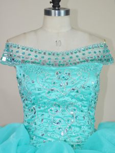Sleeveless Lace Up Floor Length Beading and Ruffles Ball Gown Prom Dress