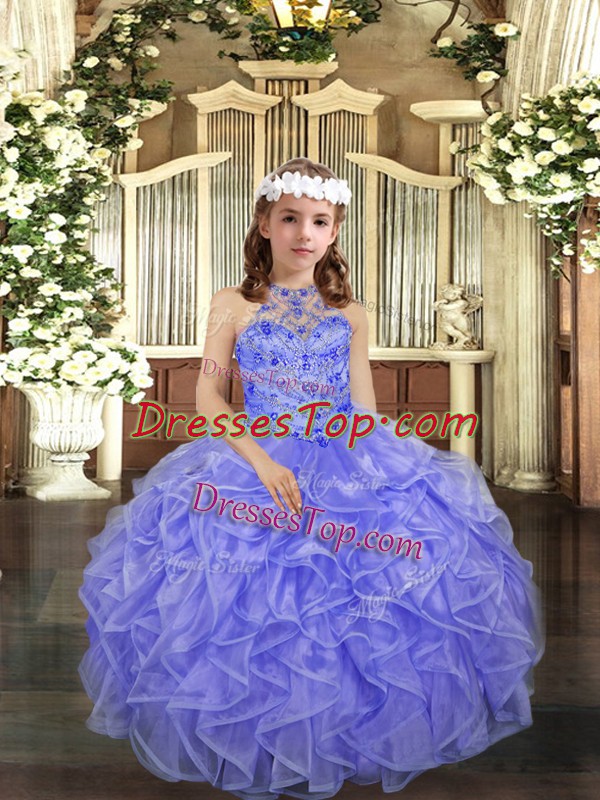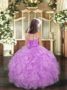 Sleeveless Lace Up Floor Length Beading and Ruffles Girls Pageant Dresses
