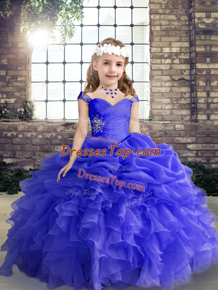 Sleeveless Lace Up Floor Length Beading and Ruffles Kids Formal Wear