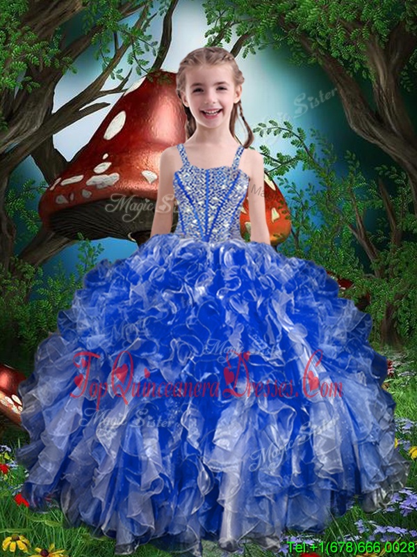 Sleeveless Lace Up Floor Length Beading and Ruffles Little Girls Pageant Dress