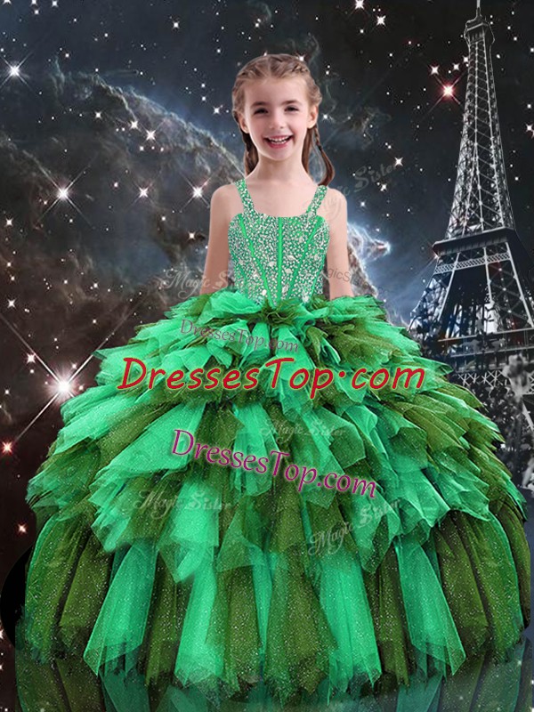 Sleeveless Lace Up Floor Length Beading and Ruffles Pageant Gowns