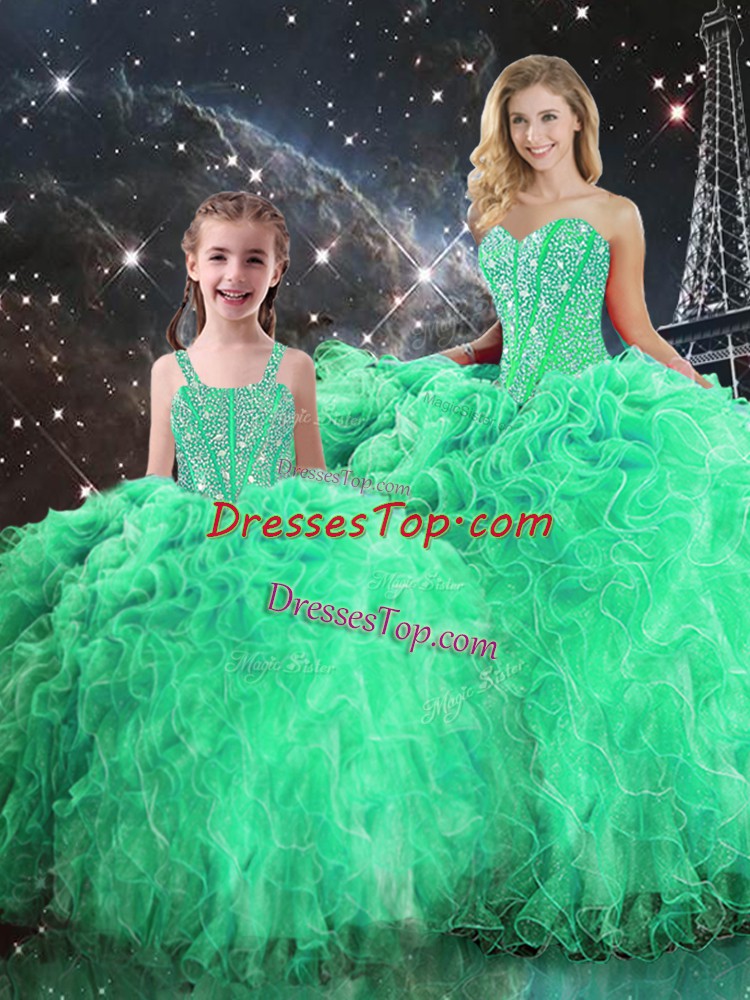 Sleeveless Lace Up Floor Length Beading and Ruffles Quinceanera Dress