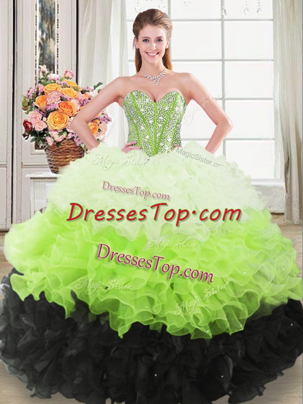 Sleeveless Lace Up Floor Length Beading and Ruffles Quinceanera Dress