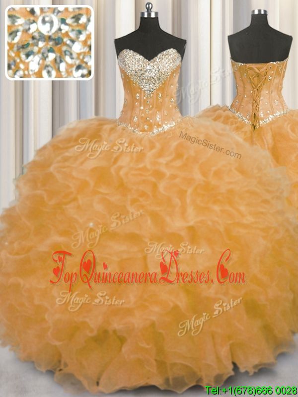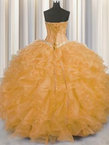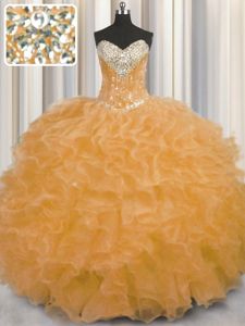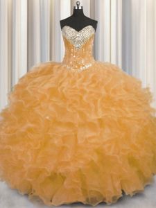 Sleeveless Lace Up Floor Length Beading and Ruffles Quinceanera Gown