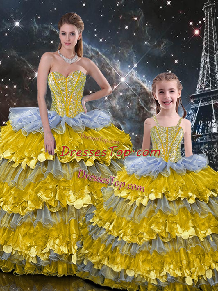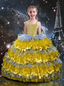Sleeveless Lace Up Floor Length Beading and Ruffles Sweet 16 Dress