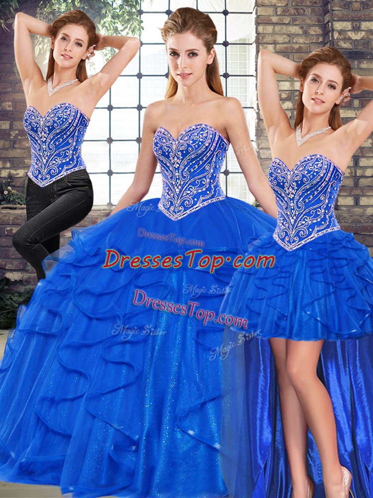 Sleeveless Lace Up Floor Length Beading and Ruffles Sweet 16 Dresses