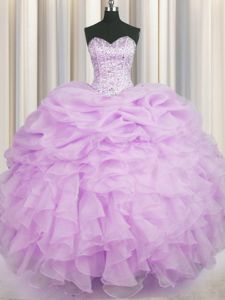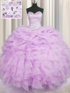 Sleeveless Lace Up Floor Length Beading and Ruffles Sweet 16 Quinceanera Dress
