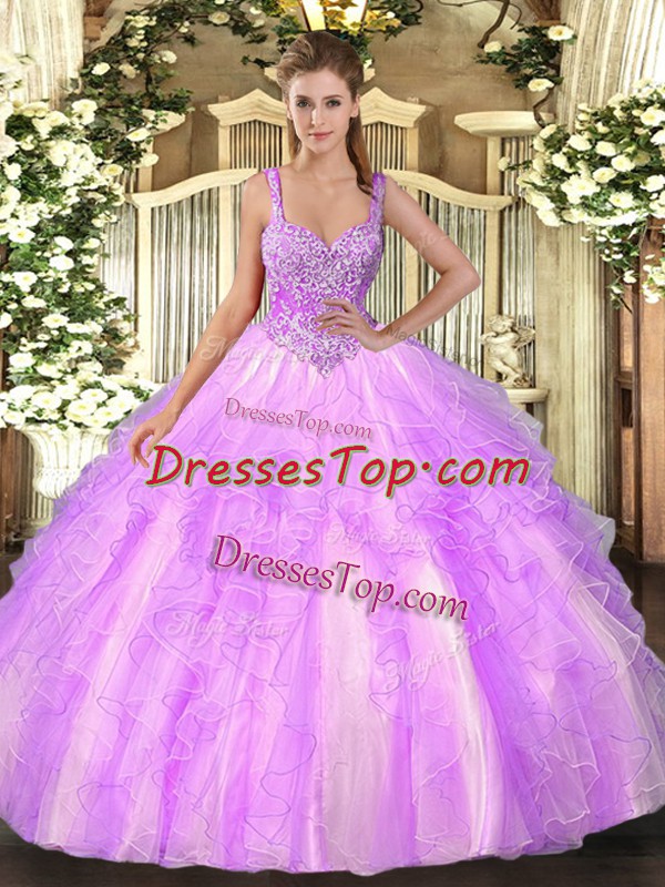 Sleeveless Lace Up Floor Length Beading and Ruffles Sweet 16 Quinceanera Dress
