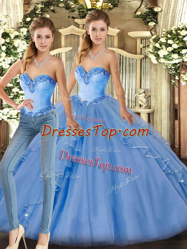 Sleeveless Lace Up Floor Length Beading and Ruffles Sweet 16 Quinceanera Dress