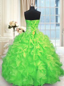 Sleeveless Lace Up Floor Length Beading Dama Dress