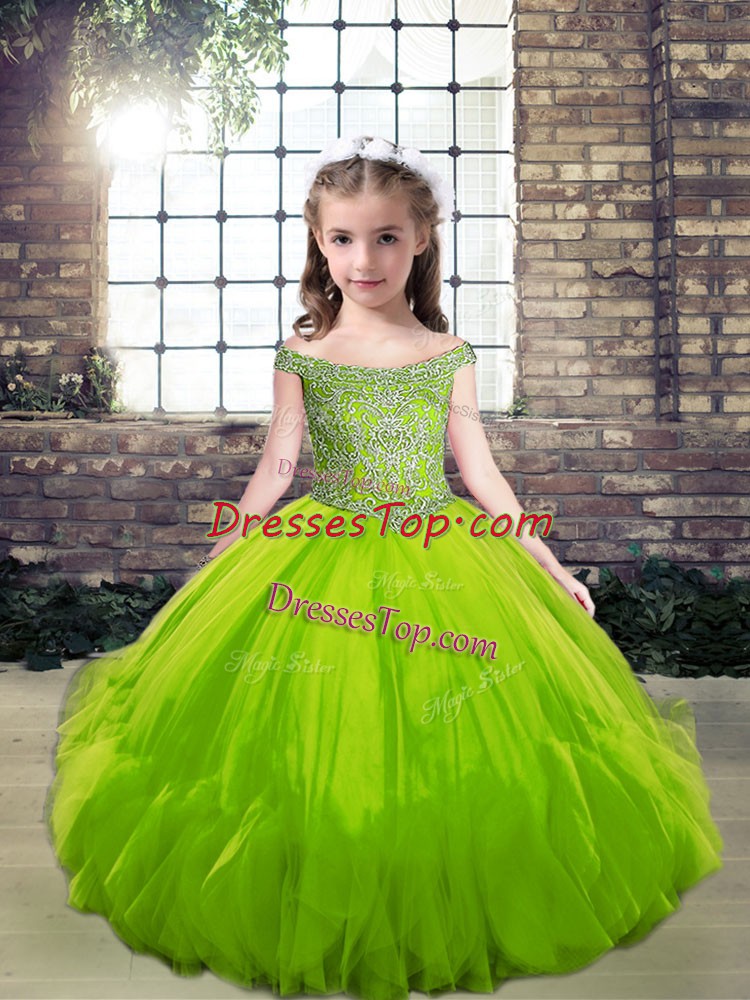 Sleeveless Lace Up Floor Length Beading Pageant Dress for Teens