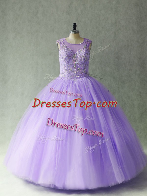 Sleeveless Lace Up Floor Length Beading Quinceanera Dress