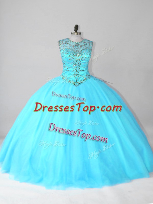 Sleeveless Lace Up Floor Length Beading Sweet 16 Dresses