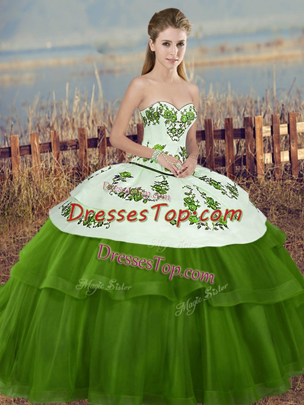 Sleeveless Lace Up Floor Length Embroidery and Bowknot Quinceanera Dresses