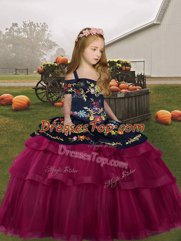 Sleeveless Lace Up Floor Length Embroidery and Ruffled Layers Pageant Gowns For Girls