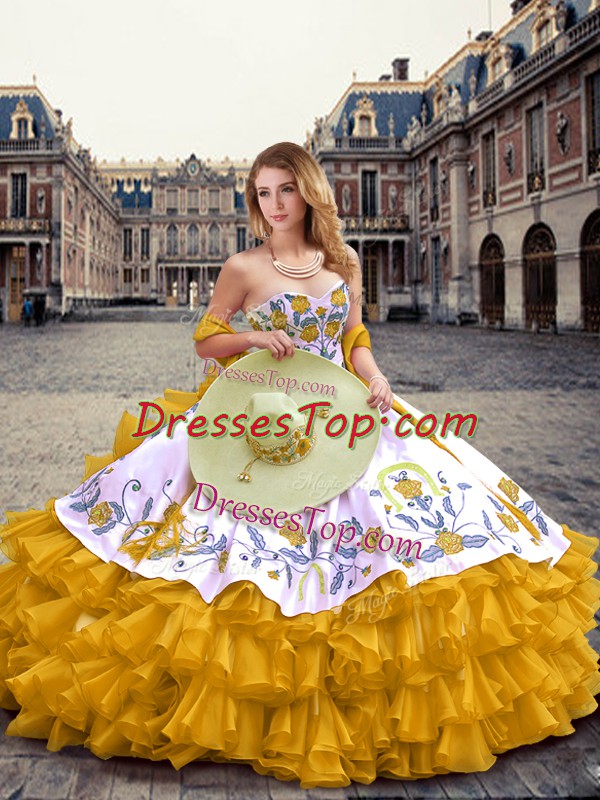Sleeveless Lace Up Floor Length Embroidery and Ruffled Layers Sweet 16 Dresses