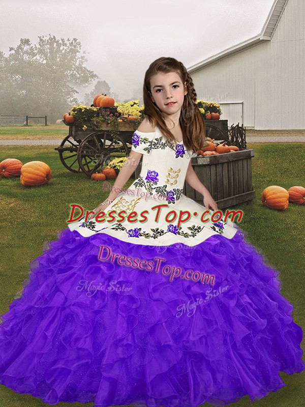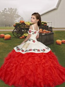 Sleeveless Lace Up Floor Length Embroidery and Ruffles Evening Gowns