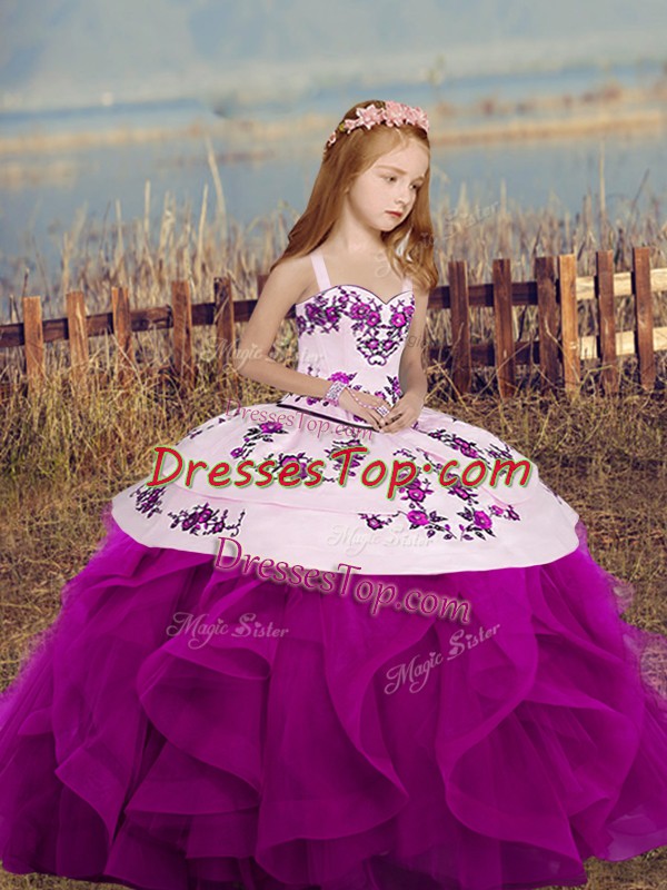 Sleeveless Lace Up Floor Length Embroidery and Ruffles Kids Formal Wear