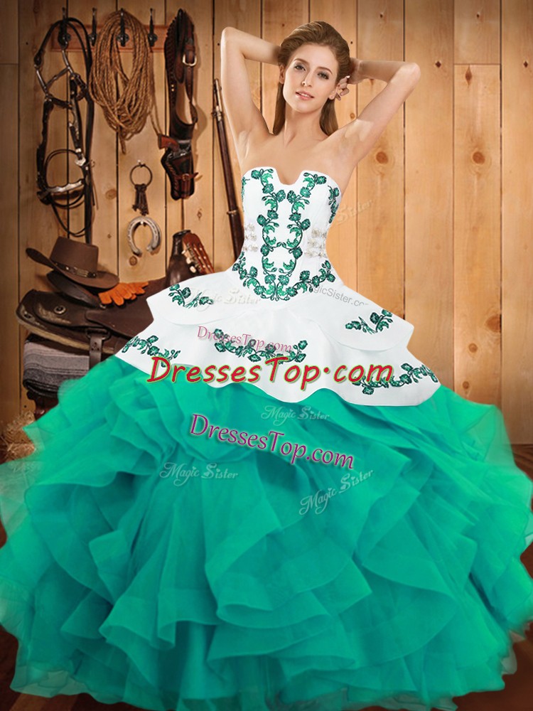 Sleeveless Lace Up Floor Length Embroidery and Ruffles Quinceanera Dress