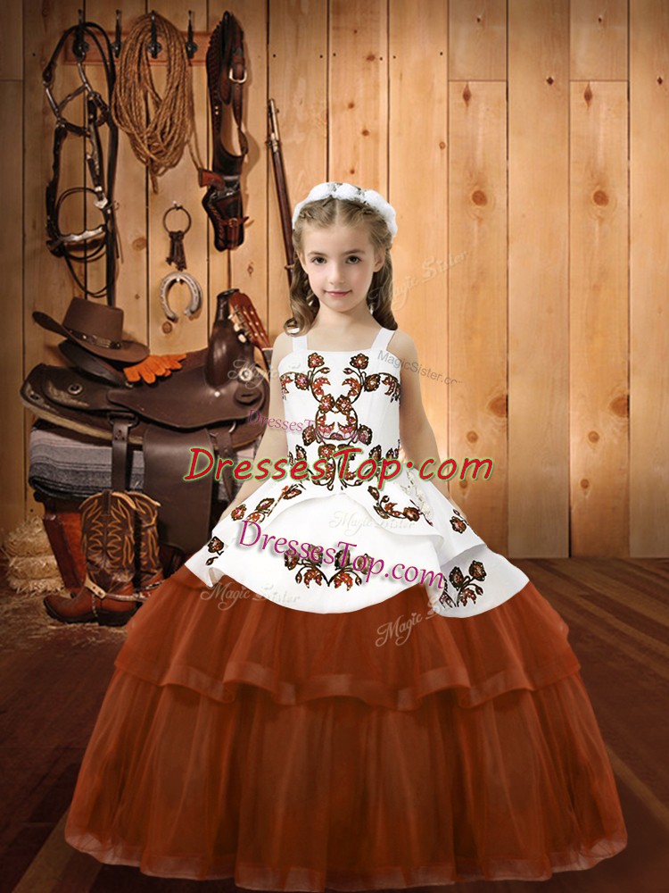 Sleeveless Lace Up Floor Length Embroidery Pageant Dress for Womens