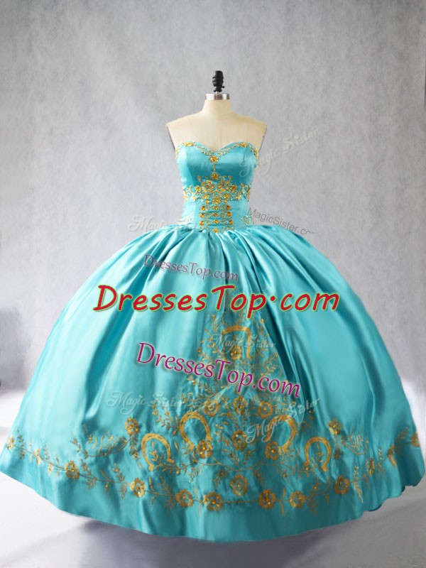 Sleeveless Lace Up Floor Length Embroidery Sweet 16 Dresses