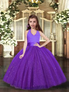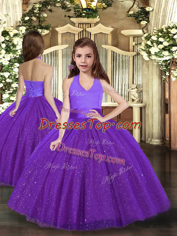 Sleeveless Lace Up Floor Length Ruching Little Girl Pageant Gowns