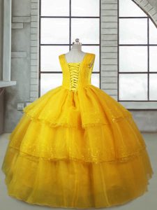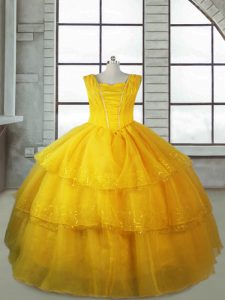 Sleeveless Lace Up Floor Length Ruffled Layers Winning Pageant Gowns