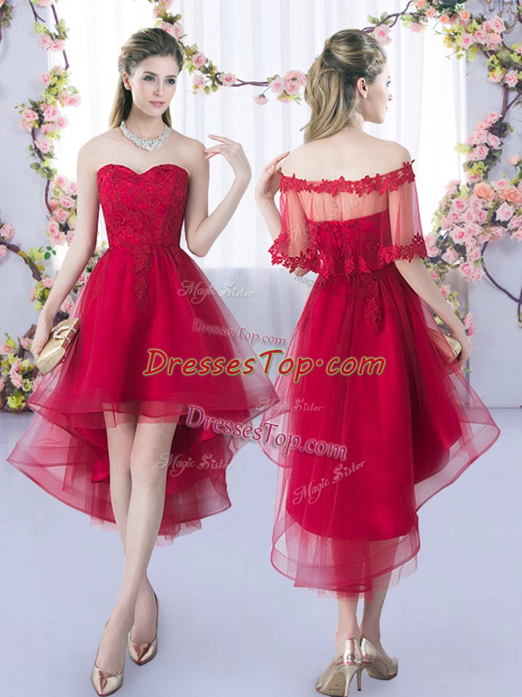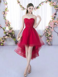 Sleeveless Lace Up High Low Lace Vestidos de Damas
