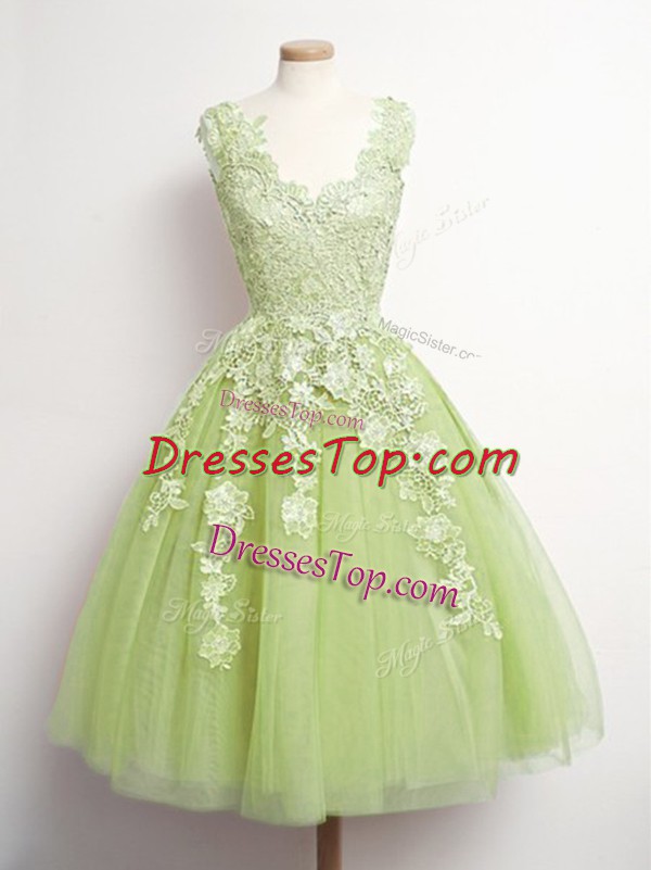 Sleeveless Lace Up Knee Length Appliques Damas Dress