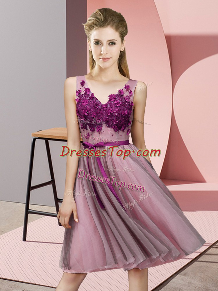 Sleeveless Lace Up Knee Length Appliques Quinceanera Court of Honor Dress
