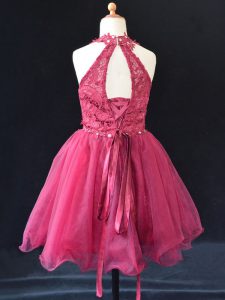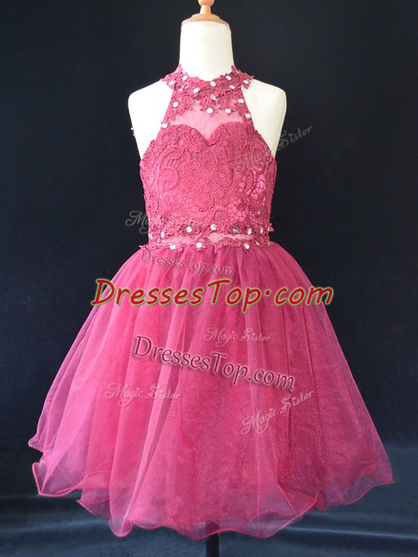 Sleeveless Lace Up Mini Length Beading and Lace Pageant Gowns For Girls