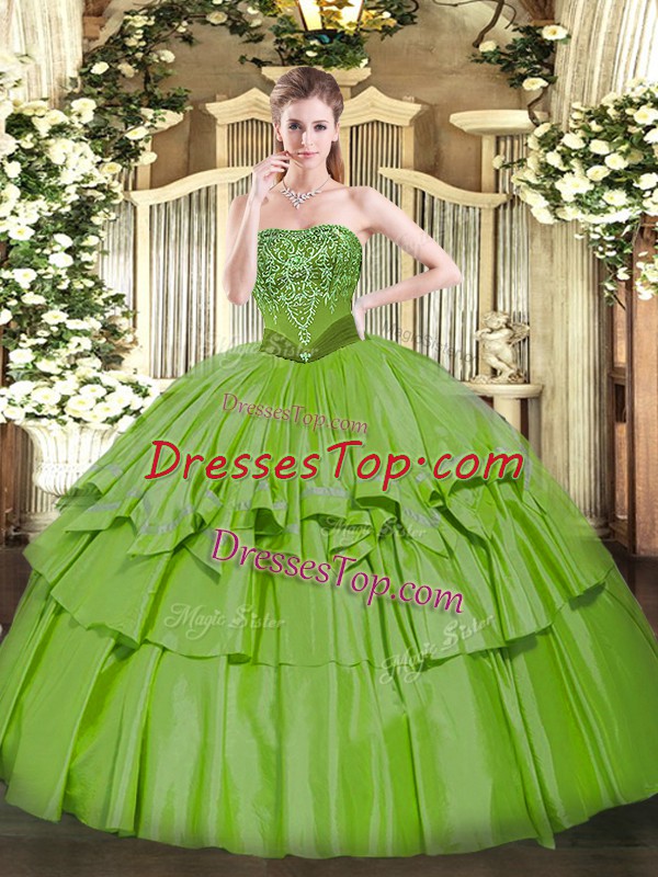 Sleeveless Organza and Taffeta Floor Length Lace Up 15 Quinceanera Dress in with Beading and Ruffled Layers